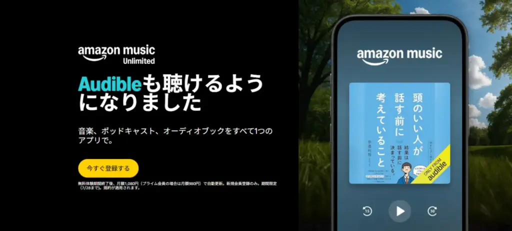 Audibleのプランは「プレミアム」と「スタンダード」だけですが、実はAmazon Music Unlimited契約者は毎月1冊Audible作品を聴くことができるのです。