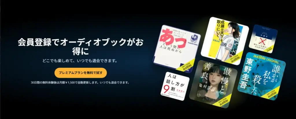 聴き放題対象外の作品もありますが、数十万というタイトル群を擁するラインナップにおいて「聴きたい作品がない」という状況になることは決してないでしょう。