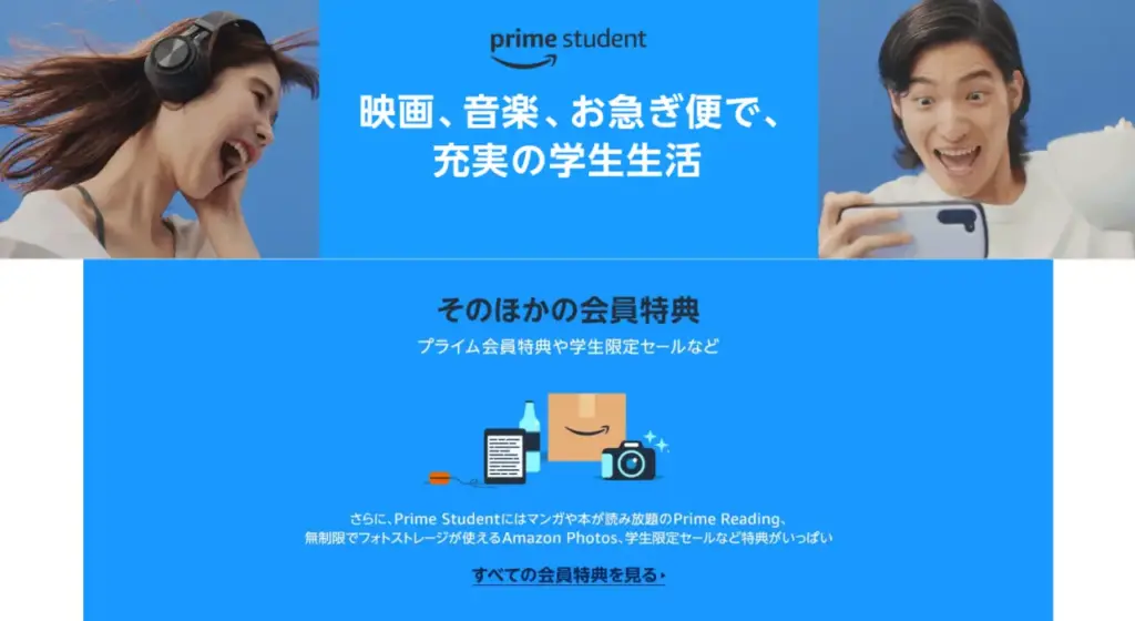 Prime Studentについては、下部にある「プライム会員とPrime Student(プライムスチューデント)の違いとは」の項目でもう少し詳しく紹介します。