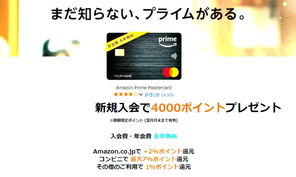 プライム会員のクレジットカードは「Amazon Prime Mastercard」となり、Amazonでの買い物に付くポイントが増加します。