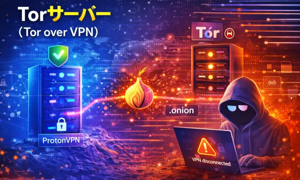 | Tor over VPN(Torサーバー) | なし | あり | あり |