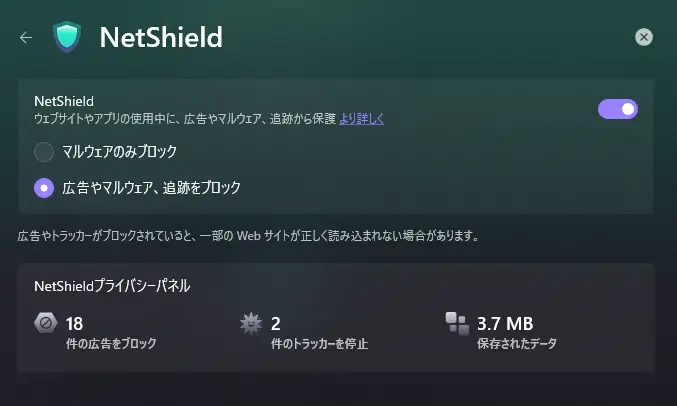 - NetShield:オン