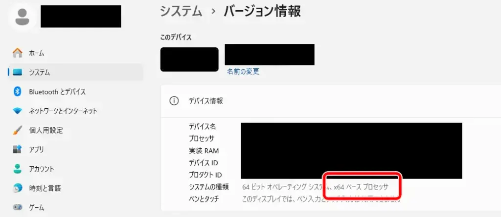 (x64)か(ARM64)、どちらをダウンロードすべきか不明な方は、以下の手順でパソコンのCPUを確認してください。