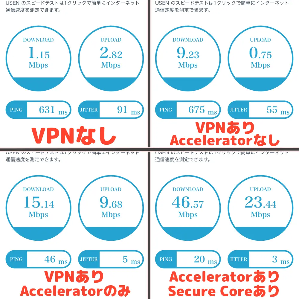 本来は”通信速度が落ちる”と言われるSecure Coreをオンにしたときが最も早かったのは意外ですね。