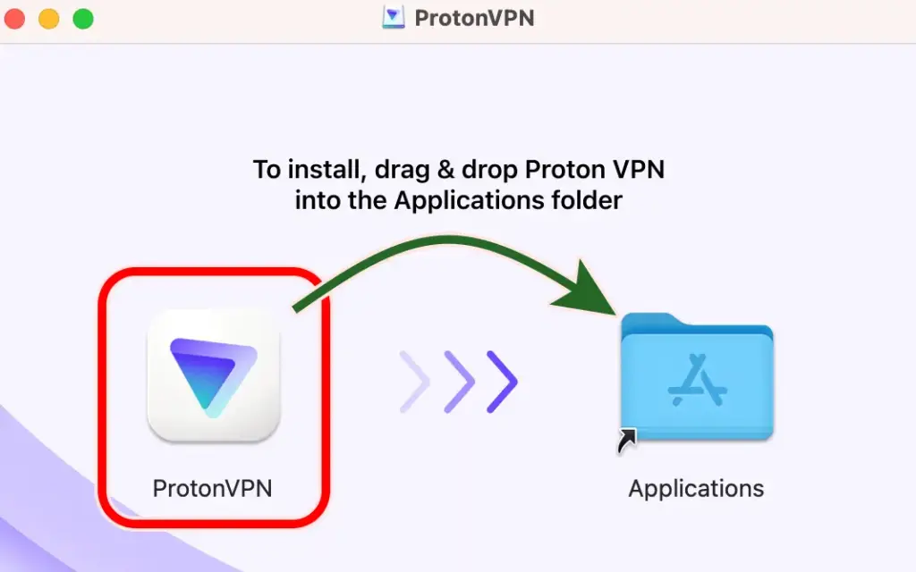 ProtonVPNアプリをドラッグしたままアプリケーションに移動させます。