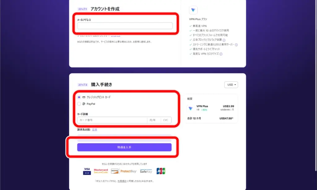 有料版ProtonVPNのアカウント作成方法