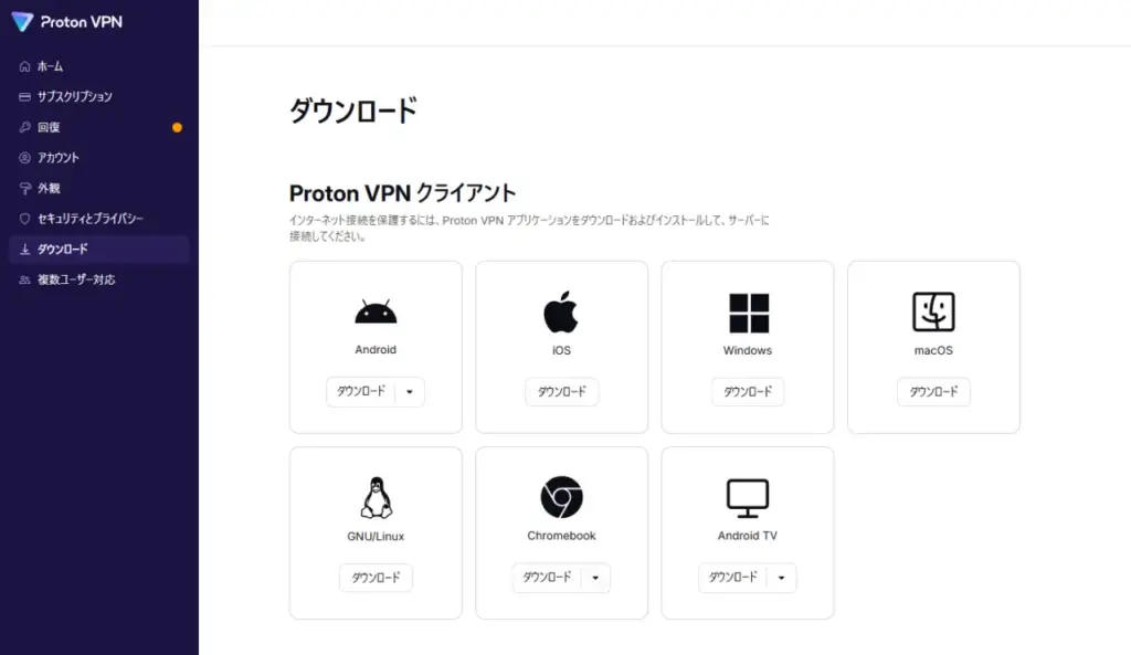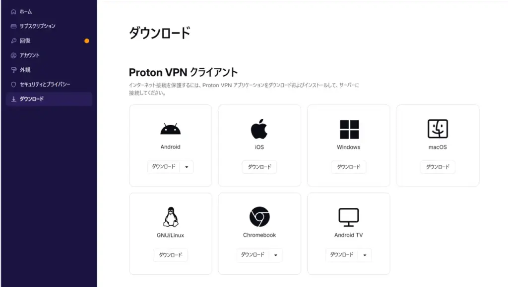 サインインしたマイページ、または公式サイトからProtonVPNアプリをダウンロードします。